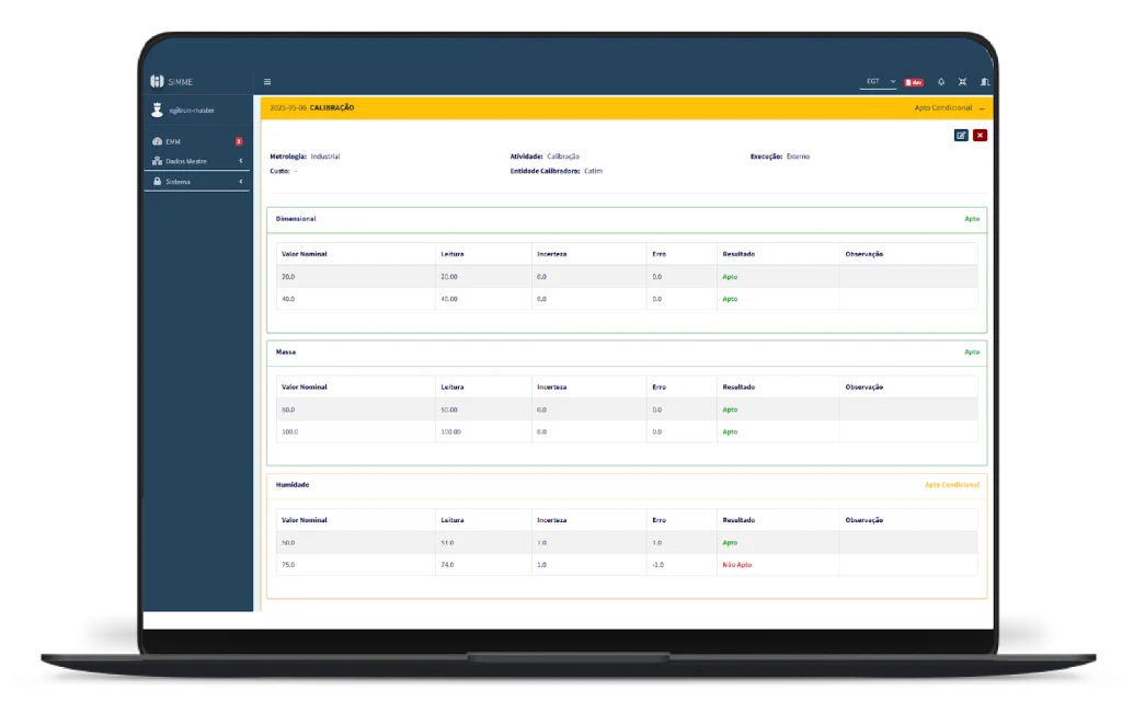 O SIMME é uma plataforma completa para gerir o ciclo de vida dos EMMs, com planeamento, registo e controlo de calibrações, verificações, manutenções e não conformidades.
